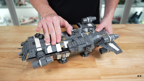 The main and only build of the 2024 model is The Onyx Cinder which is a brand new spaceship for the Star Wars universe and looks to be the main one in the Skeleton Crew series. It is mainly coloured grey but has a couple of hints of white and tan coloured pieces along with some stickers for added details. A lever can be moved forward to move the large round brick-built engines from landing mode to flying mode.