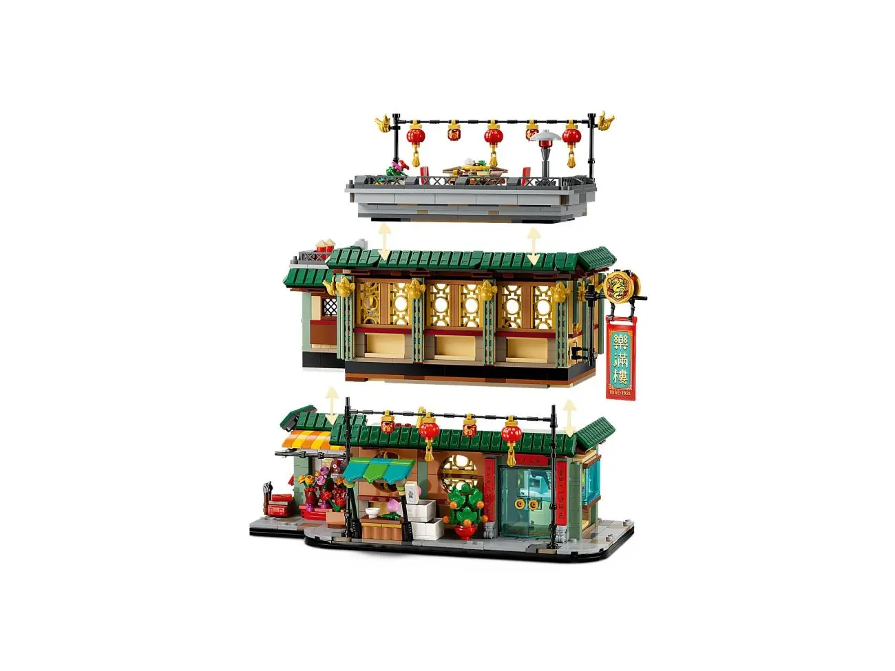 For that $130 price tag and 1,823 piece count, 80113 is the Minifigure heavy set of the wave. A total of 13 LEGO Minifigures are included in the set including 2 parents, 2 children, 2 grandparents, a tourist, a couple, a chef, 2 waiters and a figure in a Year of the Dragon costume. They all come together to celebrate Chinese New Year in this Chinese Restaurant with some beautiful building techniques used to create this Chinese architecture.