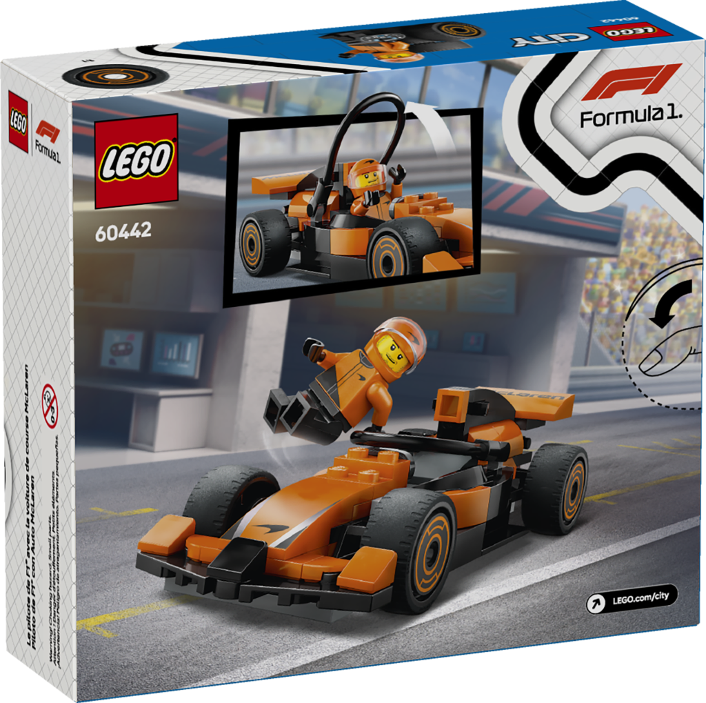 The first LEGO City Formula 1 set is the most simple of the six with it being a brick-built version of the McLaren Formula 1 car. This time it's in a much simplified six-stud wide form with the orange and black colour scheme and the McLaren logo on the front wing. The build of the car uses the new wheels seen in the LEGO Mario Kart sets and includes a single-driver Minifigure.