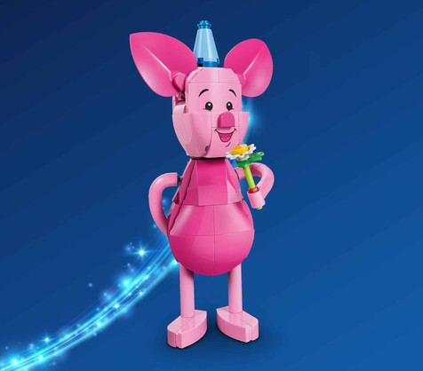 Even though it's a 9+ model, the LEGO Disney set is another brick-built character in a similar size and design style as the likes of 43243 Simba the Lion King Cub and 43286 The Aristocats Adorable Marie. Piglet measures 17cm high and can be posed in various different ways with movement in the figure's head, ears, arms and feet. The mainly pink figure includes printed eyes and mouth along with brick-built accessories of a party hat, a flower and a balloon.