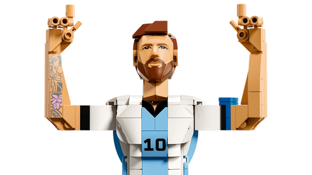 Our first football-inspired LEGO Editions set launching on the 1st of May 2026 is 43011 Lionel Messi - Soccer Highlights. The 500-piece model is built on a stylised base shaped around Messi's name, incorporating Argentina's national colours and a large number 10 shirt number. An exclusive Lionel Messi Minifigure is also included in the $29.99 / €29.99 / £24.99 set, along with a collectable plaque displaying his player stats and name.