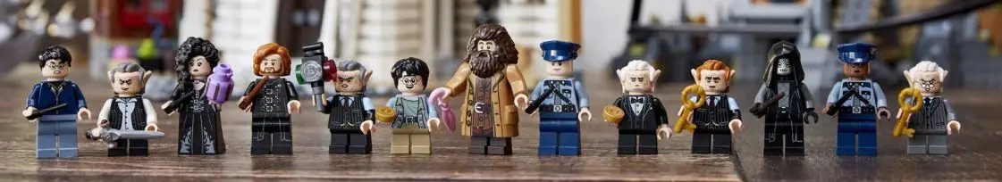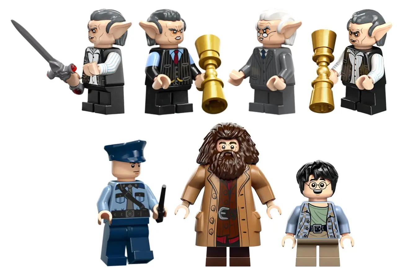 And of course, as the set is Minifigure scale a large amount of Minifigures will be included in the 4,807-piece set. A total of 13 Minifigures are included in 76417 which include Harry and Hagrid from the first film as well as Harry, Hermione in her Bellatrix disguise and Ron in his disguise from the seventh film. A few goblins are also included of Bogrod, Griphook, Rickert, two more general goblins and two guards. A Death Eater is also included.