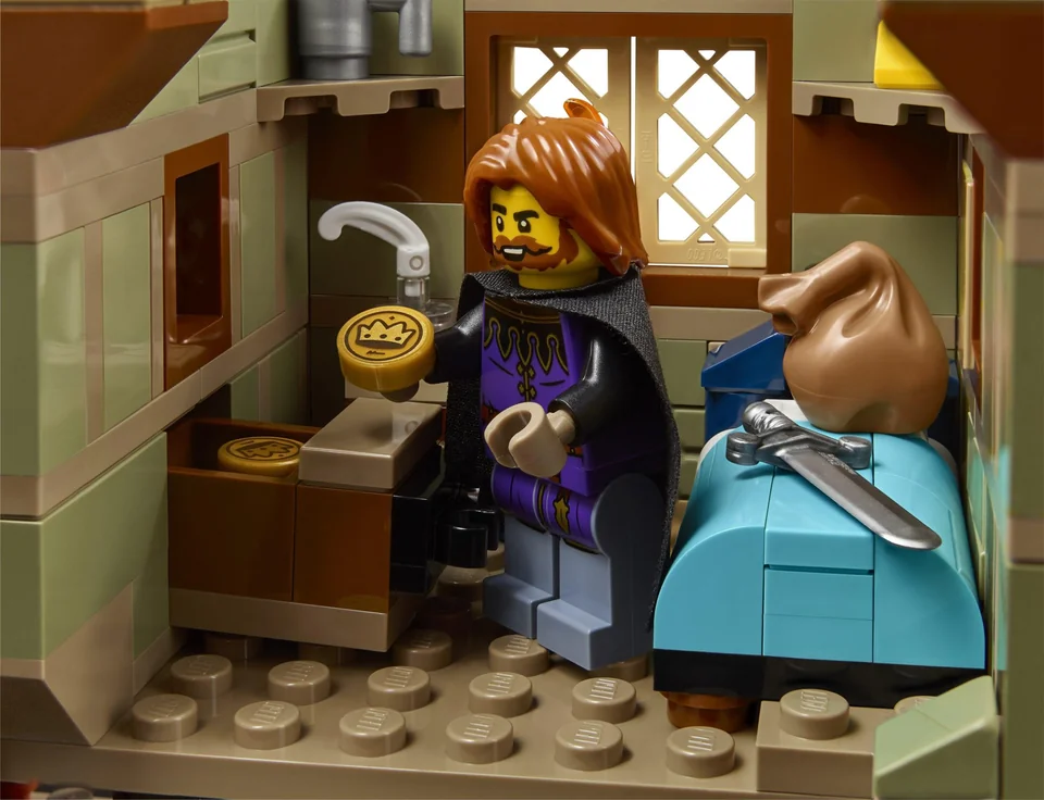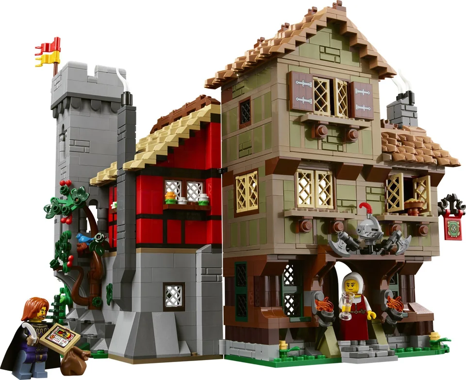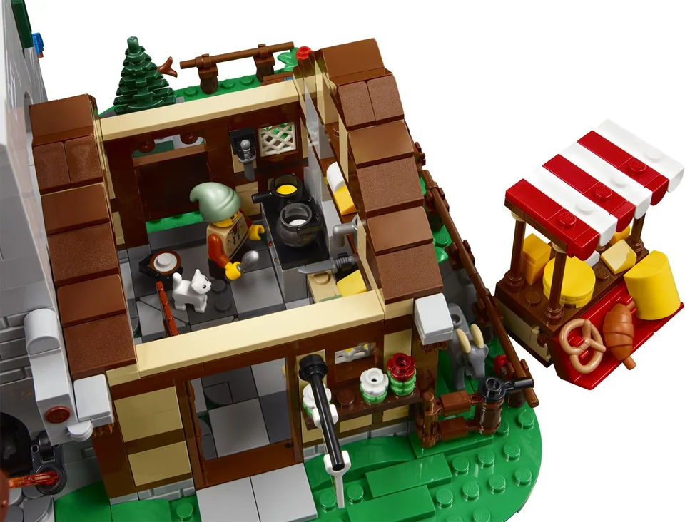 Each building seems to include different shops and workplaces for the Minifigures of the medieval town. There's an old farmhouse, a cheese factory, an inn named The Broken Axes Inn and a shieldsmith's workshop. The buildings are all very cleverly built with a stone watch tower also integrated into one of the buildings as a reference to the most recent LEGO Castle set of 10305 Lion Knights Castle.