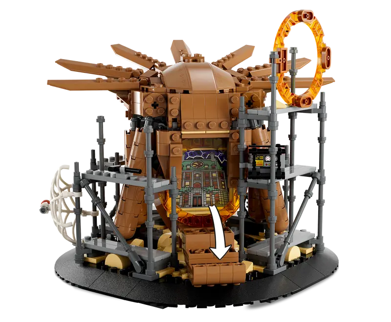 The build itself, even though small still includes some of the main features of the battle. These include the head of the Statue of Liberty, the scaffolding surrounding it and many play features to recreate the epic battle scene. This includes a removable roof that reveals Sandman’s hand, a flip-open rear access to a portal and a soft web element to envelop Minifigures.