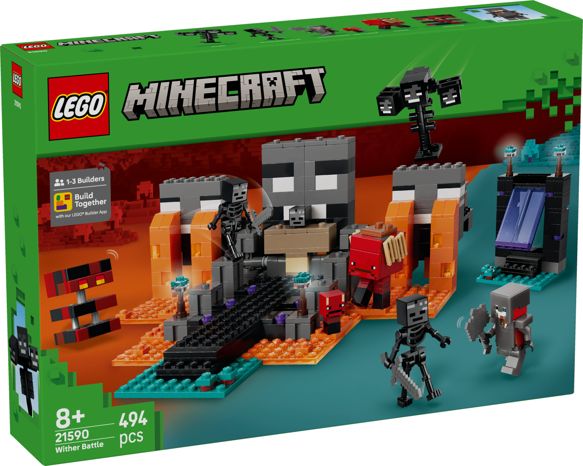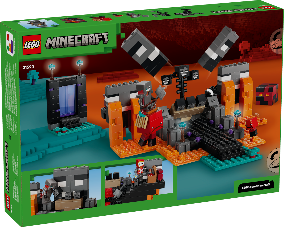 Last but not least is the most expensive set of the wave and the most action-packed: 21590 Wither Battle. The 8+ set recreates an exciting battle, based in the warped forest biome and includes a Nether portal, a hidden wither and finally an actual Wither. The rest of the 494 pieces include a Crimson Warrior Minifigure skin, two wither skeletons, a strider, and a magma cube.