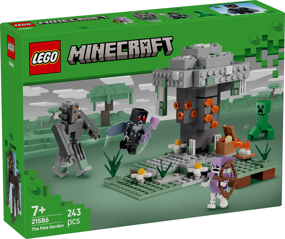 One of Minecraft's newest biomes has already been recreated in brick-built LEGO form with 21586 The Pale Garden, which includes 243 pieces retailing for $19.99 / €19.99 / £17.99. The 7+ build is a very unique and interesting set for the theme, as it recreates the monochromatic colour scheme and aesthetic inspired by horror films seen in the in-game biome. The Creaking is one of many creatures that inhabit the Pale Garden and is included here along with a winged Mothman LEGO Minifigure.
