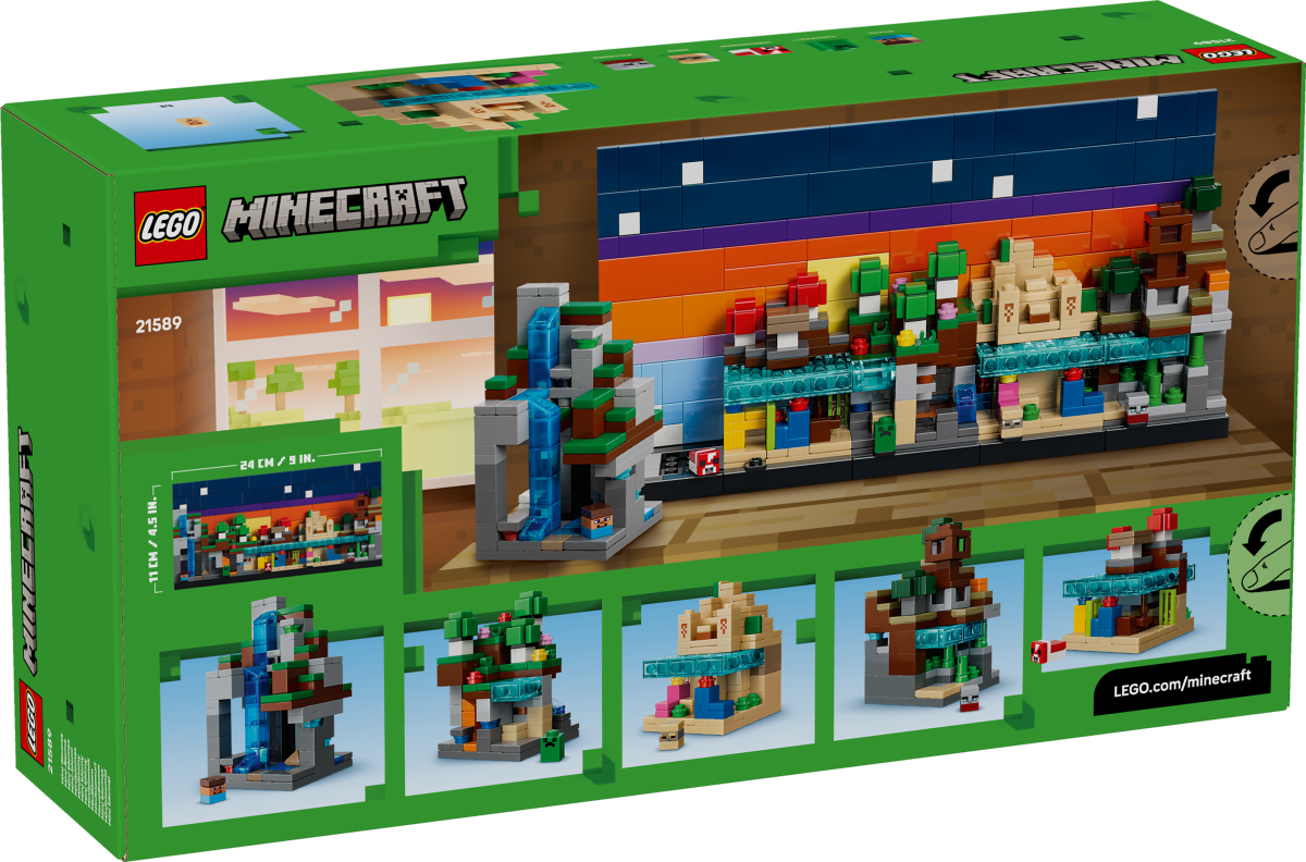 Similar to 2024's 21265 The Crafting Table, 21589 Mini Biomes is more of a display model, recreating a diverse range of Minecraft biomes in microscale form. The biomes include a mountainous cave scene with a waterfall flowing through it, a birch forest, a mushroom field, a desert complete with our first LEGO Minecraft desert temple and a savanna complete with a pillager outpost. The 12+ model includes 797 pieces retailing for $59.99 / €59.99 / £54.99.