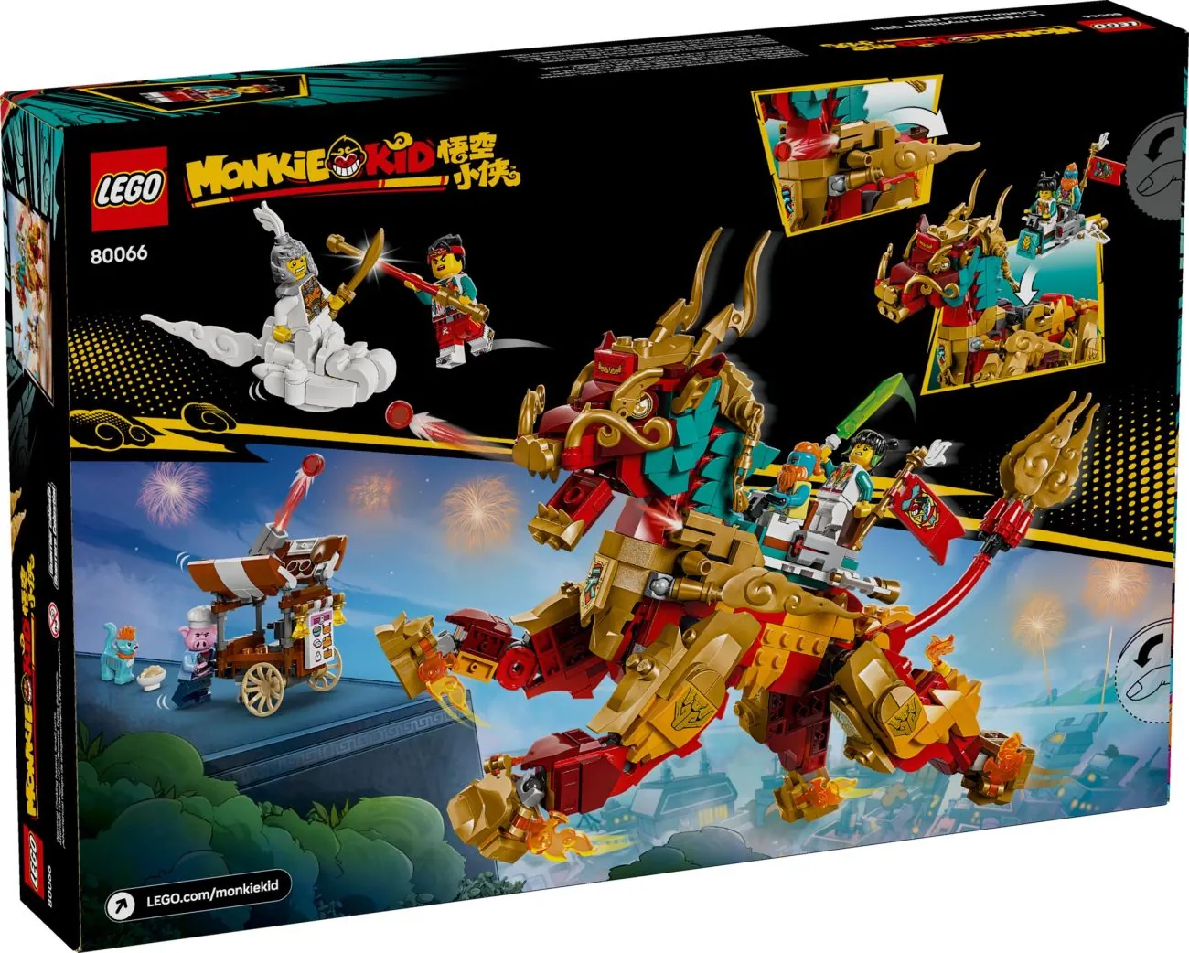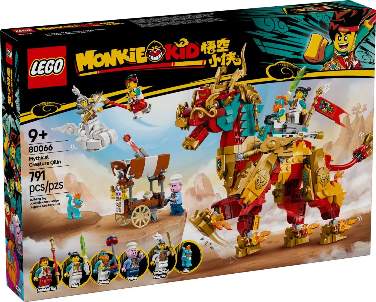 Along with the mighty Mythical Creature Qilin, a small sales stand for the Minifigure Pigsy is also included. Pigsy is one of five Minifigures included in 80066 with the other four being Monkie Kid, Mei, Sandy and another Celestial General alongside the blue and orange cat Mo.