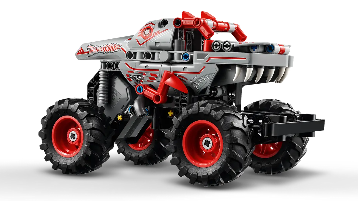 42200 Monster Jam ThunderROARus Pull-Back is the second LEGO Technic Monster Jam set which is slightly larger with 232 pieces retailing for the same price of $27.99. This monster truck however has very unique styling, inspired by prehistoric themes. The body of the monster basically resembles a tyrannosaurus skull in a red-and-grey colour scheme.